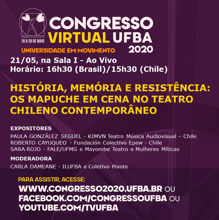 Mesa 1. História, memória e resistência: os Mapuche em cena no teatro chileno contemporâneo (Carla, Sara Rojo, Paula González e Roberto Cayuqueo).